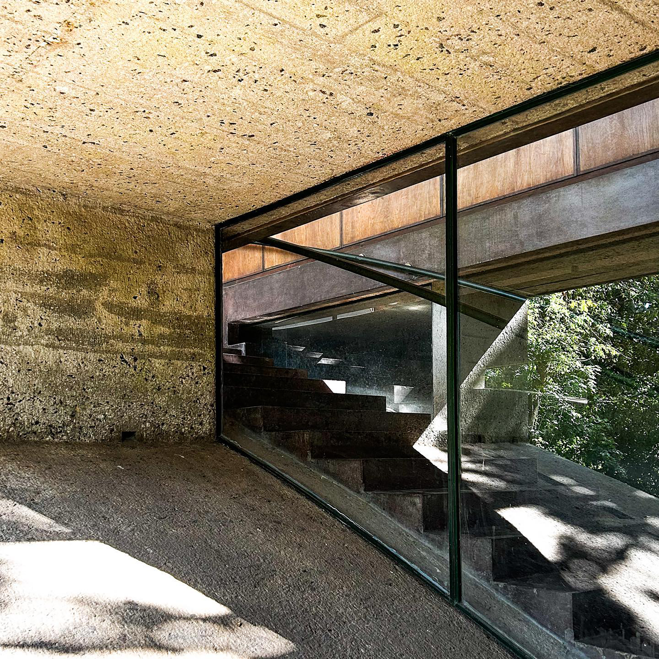 Finalizată în 1948, reședința are un exterior simplu din beton armat. Un singur etaj al volumului dreptunghiular este suspendat peste un arc care se ridică până la nivelul copacilor.