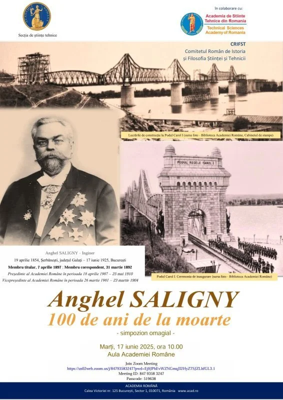 Pe 17 iunie 2025 aula Academiei Române a stat, mai mult ca oricând, sub semnul marelui Saligny. În cadrul simpozionului omagial “Anghel Saligny ‒ 100 de ani de la moarte” ‒ o inițiativă a Secției de Științe Tehnice a Academiei Române, desfășurată în parteneriat cu Academia de Științe Tehnice din România și CRIFST ‒ Comitetul Român de Istoria și Filosofia Științei și Tehnicii ‒ o sumă de reprezentanți de marcă ai științei românești actuale s-au reunit pentru a evoca personalitatea multifațetată a unuia dintre cei mai mari și mai iubiți înaintași, reper, până în zilele noastre, al inginerilor constructori, ctitor și reformator în domeniul său de competență, ale cărui opere nu au încetat să fie privite cu admirație până în zilele noastre.