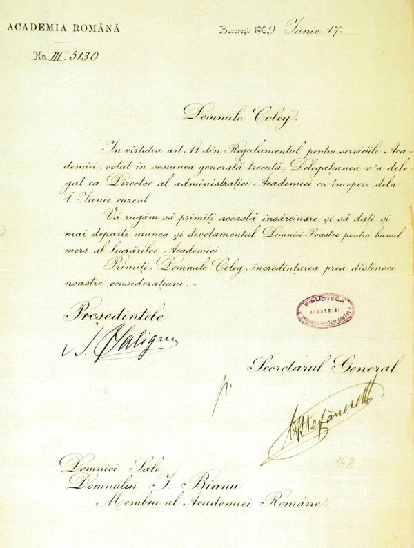 Scrisoarea lui Ioan Bianu către Anghel Saligny